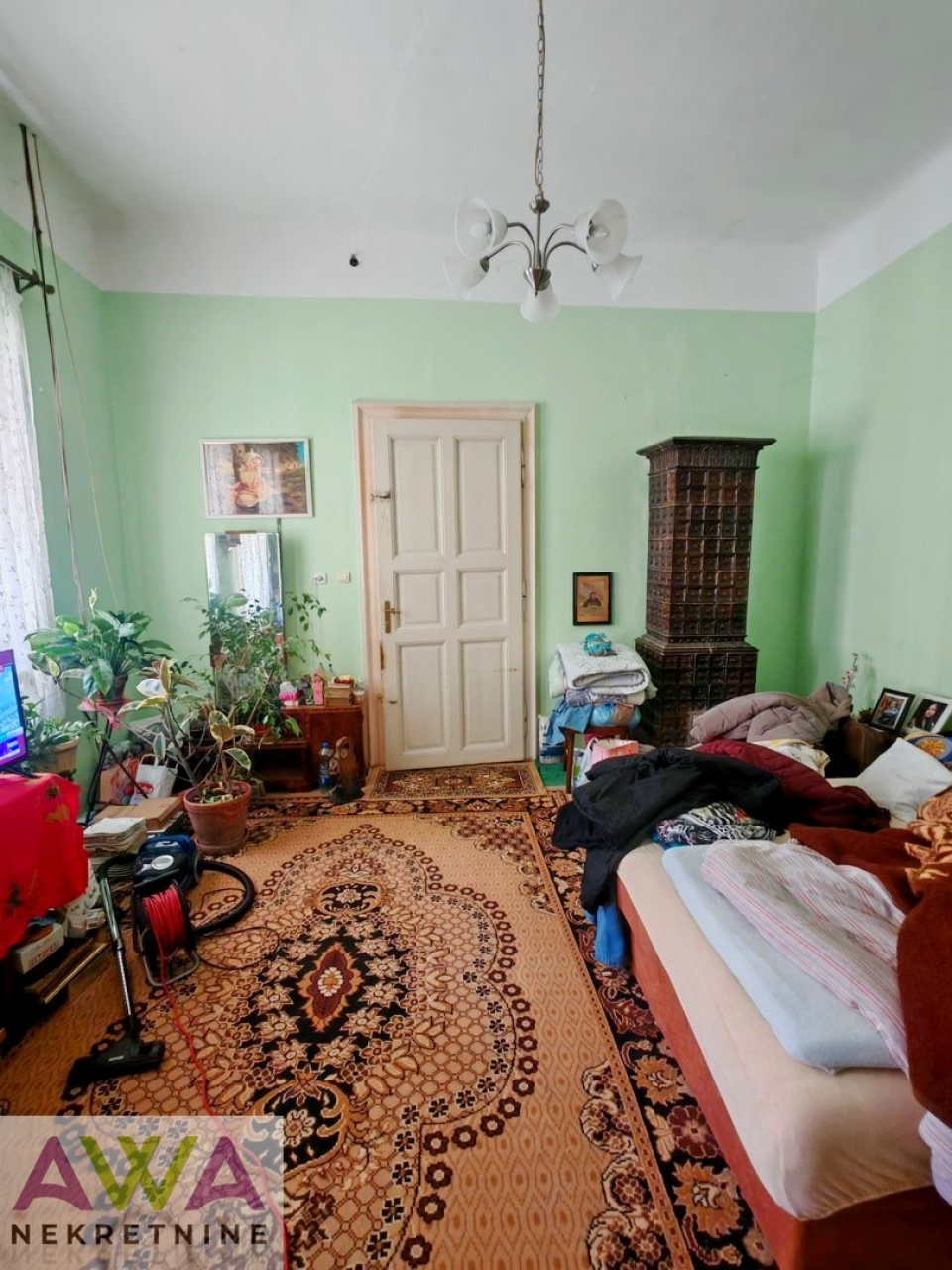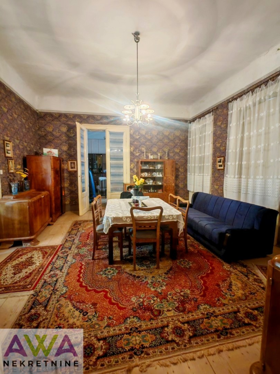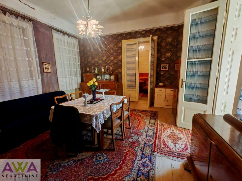 Unutrašnjost kuće krase visoki plafoni, velike prostorije i autentični detalji, koji čuvaju atmosferu nekadašnjih građanskih domova.
